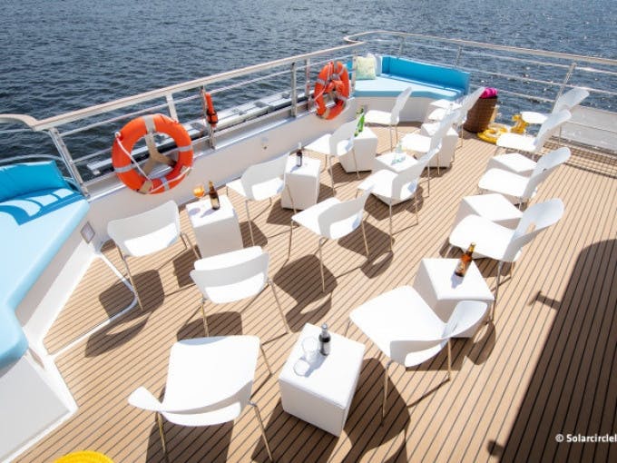 • An onboard bar is available with a selection of drinks, including soft drinks, spritzers, and classic cocktails