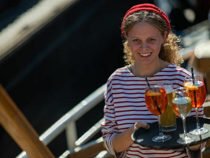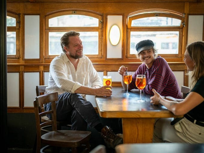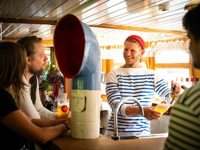 Savour a freshly poured local beer from the on-board bar or choose from a wide selection of mixed drinks as Berlin's twinkling lights slowly drift past. Your culinary needs are also catered for: organic sausages, tasty fish sandwiches, or a vegan hummus option are available from the kitchen.