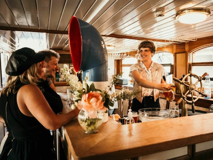 The "Kaiser Friedrich" provides not only a nostalgic atmosphere but also cozy seating, a well-stocked on-board bar, light snacks, and fascinating insights into Berlin's history. It's an ideal way to spend the latter part of your day in the city after exploring Friedrichshain.