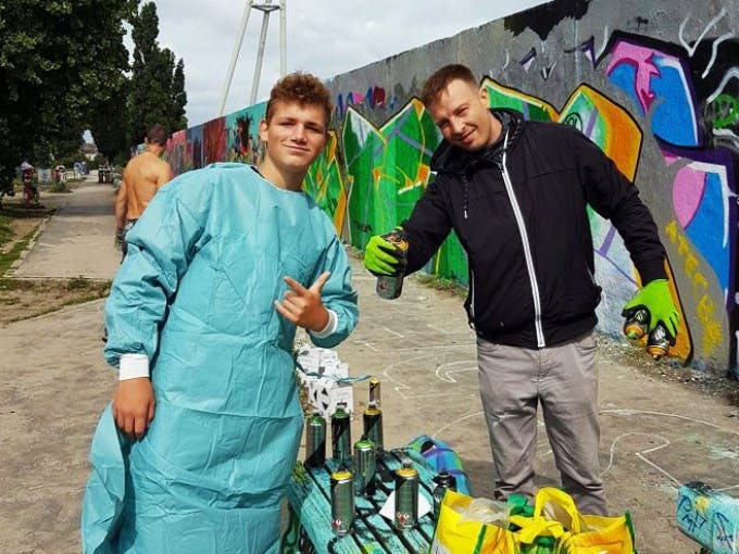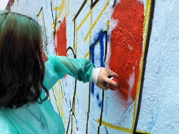 The workshop includes a one-hour graffiti tour with explanations of the different styles, half hour of preparation of the wall and the motif to be sprayed, and 1.5 hours of spraying on the wall under professional guidance.