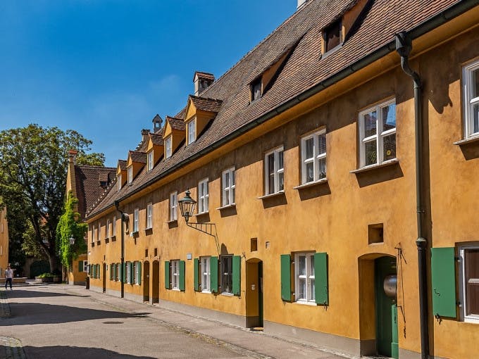 O Fuggerei é reconhecido como o mais antigo complexo de habitação social do mundo ainda hoje habitado. Fundado em 1521 por Jakob Fugger, o Rico, foi concebido para proporcionar aos cidadãos católicos menos afortunados de Augsburgo uma habitação segura por uma renda anual simbólica de apenas 0,88 euros - um montante que se mantém inalterado mesmo após mais de cinco séculos.