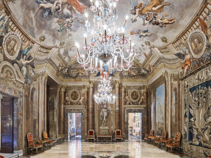 A masterpiece of Roman Baroque, the Galleria Colonna was commissioned in the mid-1600s by Cardinal Girolamo I Colonna and his nephew Lorenzo Onofrio, and inaugurated in 1700 by Philip II Colonna. Originally designed by Antonio del Grande, it was later enhanced by Bernini, Paolo Schor, and Carlo Fontana.